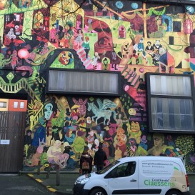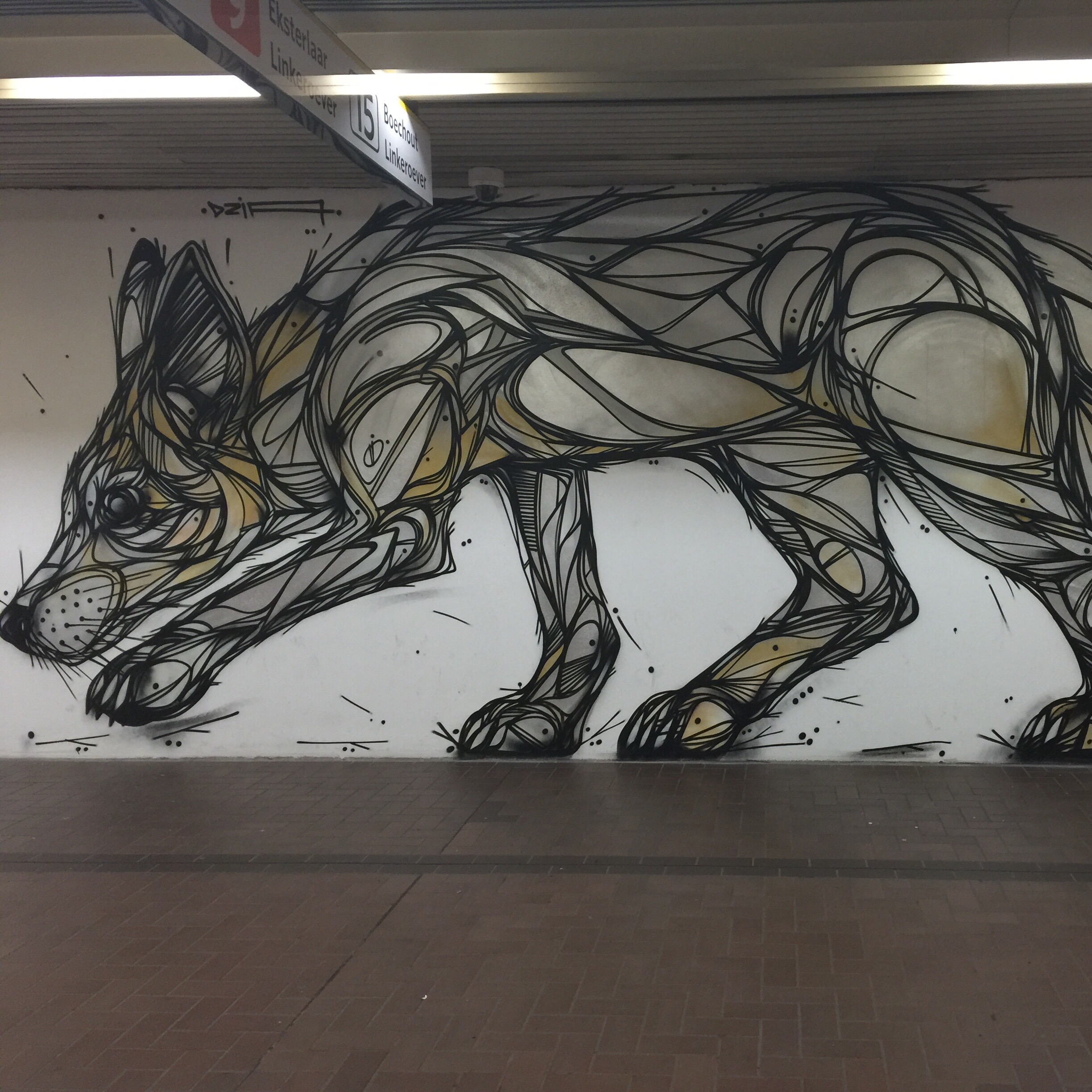 Jede/r Exkursionsteilnehmer/in hat in der Stadt, die ich immer glaubte mit b für Berta zu schreiben, ein Referat zu einem beliebigen Thema gehalten. Natürlich direkt vor der jeweiligen Attraktion und stets im Bezug zum Leitthema Raum, Orientierung und Übersetzung. Wir haben uns dem Thema Street Art im urbanen Raum gewidmet mit direktem Bezug zu der Stadt. Begonnen haben wir unsere kleine Tour in der Kopstraatje, einer kleinen bunte Gasse, die voll von Street Art ist. Auch haben wir uns auf die Suche nach den bekannten „Stripmuren“ gemacht, also Comic-Wandbildern, wovon es genau 10 in Antwerpen gibt. Die Stadt hat diese in Auftrag gegeben, um den Comic Kult in Belgien hochleben zu lassen und die Stadtentwicklung sowie den Tourismus voranzutreiben. Ein bekannter Street Art Künstler ist Dzia, der sich durch einen einzigartigen Stil auszeichnet, indem er Tiere mit geometrischen Formen und Linien zeichnet. Die Funktion der Street Art Galerie „Artifex“ haben wir kritisch hinterfragt, denn was hat „Street Art“ hinter Glas und Rahmen zu suchen? Aber die Stadt zeigt, dass man mit der richtigen Einstellung vieles Verschönern kann, so auch die Stromkästen!