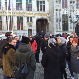 Eine wahrlich romantische Stadt mit roten Backsteinhäusern überall. Die Stadt ist von Antwerpen aus in ca. 1,5 Stunden mit dem Zug erreichbar und auf dem Weg dorthin liegt auch Gent, ebenso eine sehenswerte Stadt, meinte unser Professor. In Brügge war unser Aufenthalt allerdings sehr kurz. Wir sind den Spuren der Börse gefolgt (das Wort kommt von einer belgischen Familie, die so hieß) und haben festgestellt, dass die Stadt als Ganzes Weltkulturerbe der UNESCO ist und auch „Venedig des Nordens“ genannt wird. Die Filmkulisse von „Brügge sehen und sterben“ haben wir uns natürlich auch nicht entgehen lassen. Absolut empfehlenswert: der Süßwarenladen „Aux Merveilleux“ – Schwedenbomben deluxe!